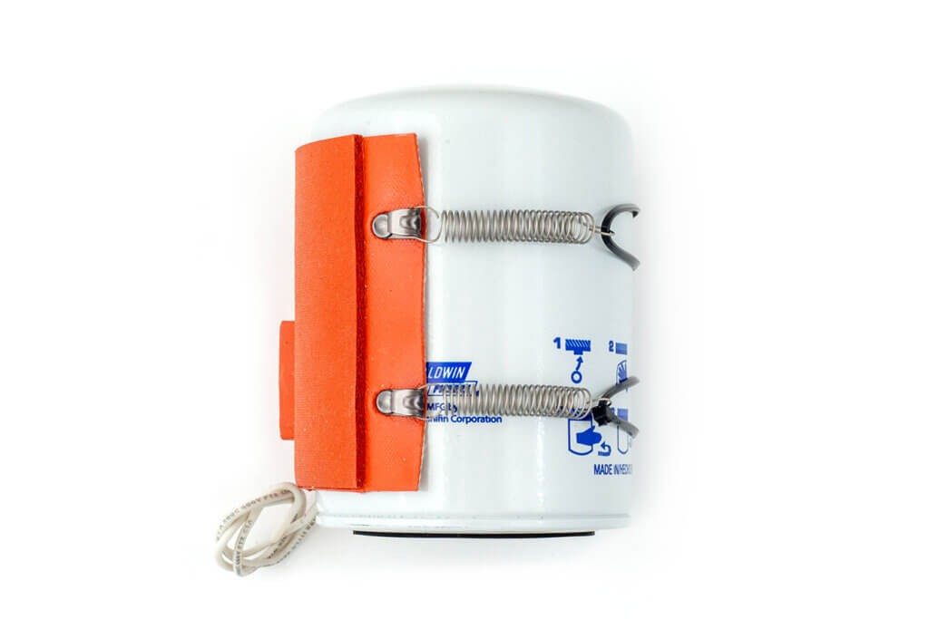 Diesel fuel contains paraffin wax, which enhances combustion—but when temperatures drop, that same wax can solidify, leading to fuel gelling in the filter. The Universal Fuel Filter Preheater is designed to prevent this issue by gently warming metal diesel filters ranging from 2.5″ to 4″ in diameter.