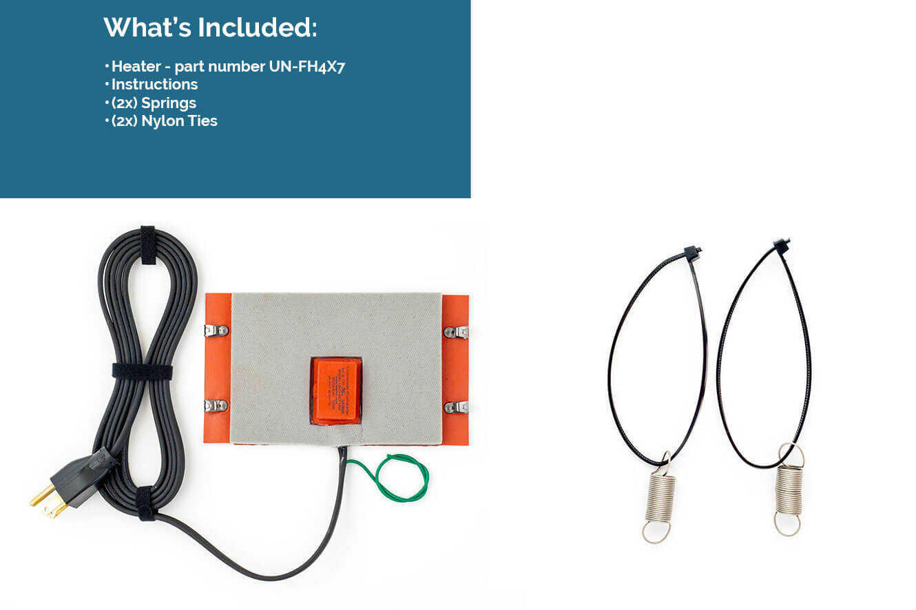 Universal Preheater: UN-FH4X7/120 — 85W 120V 0.7 amp Fuel Filter Preheater, with thermostat.